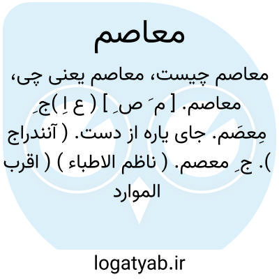 لغت نامه دهخدا معاصم. [ م َ ص ِ ] ( ع اِ )ج ِ مِعصَم. جای یاره از دست. ( آنندراج ). ج ِ معصم. ( ناظم الاطباء ) ( اقرب الموارد ). و رجوع به معصم شود.