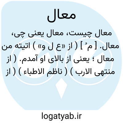 معال. [ م ُ ] ( از «ع ل و» ) اتیته من معال؛ یعنی از بالای او آمدم. ( از منتهی الارب ) ( ناظم الاطباء ) ( از محیطالمحیط ).