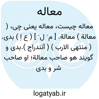 ( معالة ) معالة. [ م َ ل َ ] ( ع اِ ) بدی. ( منتهی الارب ) ( آنندراج ).بدی و گویند هو صاحب معالة؛ او صاحب شر و بدی است. ( ناظم الاطباء ) ( از اقرب الموارد ). || معالة البرذون؛ علف ستور. ( منتهی الارب ) ( ناظم الاطباء ).