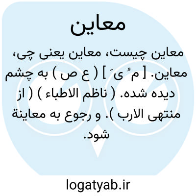 معاین. [ م ُ ی َ ] ( ع ص ) به چشم دیده شده. ( ناظم الاطباء ) ( از منتهی الارب ). و رجوع به معاینة شود.