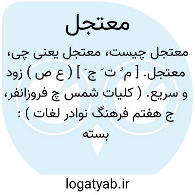 معتجل. [ م ُ ت َ ج َ ] ( ع ص ) زود و سریع. ( کلیات شمس چ فروزانفر، ج هفتم فرهنگ نوادر لغات ):