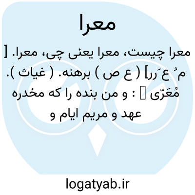 از ملک مبرا شود از ملک معرا.مسعودسعد. || منزه. مبرا: چه جناب مراد اعظم ازسیئات مجرد و معرا توان دانست. ( منشآت خاقانی چ محمد روشن ص 157 ). و از شوایب تغییر و تبدیل و زیادت و نقصان معرا و مبرا. ( جامع التواریخ رشیدی ).