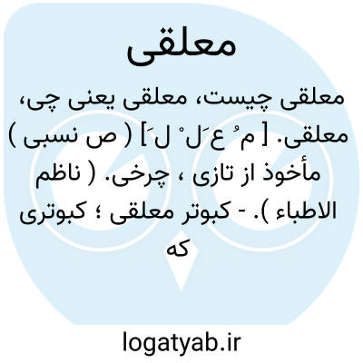 معلقی. [ م ُ ع َل ْ ل َ] ( ص نسبی ) مأخوذ از تازی، چرخی. ( ناظم الاطباء ).