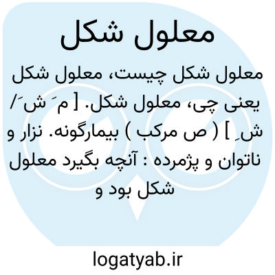 معلول شکل. [ م َ ش َ/ ش ِ ] ( ص مرکب ) بیمارگونه. نزار و ناتوان و پژمرده: آنچه بگیرد معلول شکل بود و تا دو سه سال نشاطی و قوتی به آن بازدید نیاید. ( فلاحت نامه، یادداشت به خط مرحوم دهخدا ).