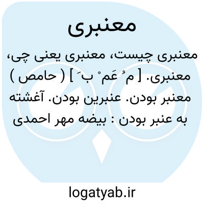 معنبری. [ م ُ عَم ْ ب َ ] ( حامص ) معنبر بودن. عنبرین بودن. آغشته به عنبر بودن: