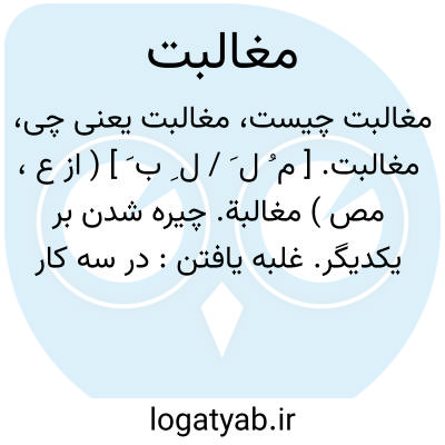 مغالبت. [ م ُ ل َ / ل ِ ب َ ] ( از ع، مص ) مغالبة. چیره شدن بر یکدیگر. غلبه یافتن: در سه کار اقدام نتوان کرد مگر به رفعت همت، عمل سلطان و بازرگانی دریا و مبالغت با دشمن. ( کلیله و دمنه ). و ظلمی که رفته بود از مبالغت خصوم و منازعت در ملک موروث و خانه قدیم اعلام دادند. ( ترجمه تاریخ یمینی چ 1 تهران ص 68 ). مثالی به استدعای او روانه کرد و او را به موافقت جمع و مظاهرت قوم و... مغالبت دشمن دولت خواند. ( ترجمه تاریخ یمینی چ 1 تهران ص 173 ). او را بر قصد ری تحریض داد و بر مخاصمت و مغالبت مجدالدوله اغرا کرد. ( ترجمه تاریخ یمینی چ 1 تهران ص 271 ). در مطالبت ملک راه مغالبت پیش گرفتند. ( ترجمه تاریخ یمینی چ 1 تهران ص 313 ). و رجوع به ماده بعد شود.