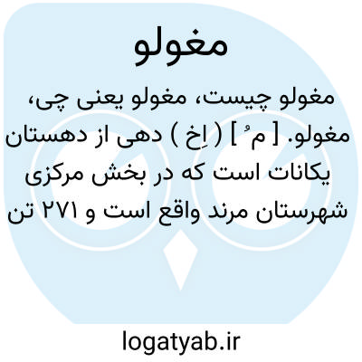 مغولو. [ م ُ ] ( اِخ ) دهی از دهستان یکانات است که در بخش مرکزی شهرستان مرند واقع است و 271 تن سکنه دارد. ( از فرهنگ جغرافیایی ایران ج 4 ).