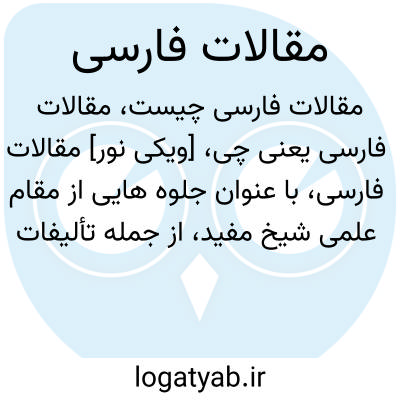 [ویکی فقه] مقالات فارسی (کتاب). «مقالات فارسی»، با عنوان جلوه هایی از مقام علمی شیخ مفید، از جمله تالیفات آیت الله حسن زاده آملی، پیرامون شخصیت علمی و بعضی از آرای شیخ مفید است.