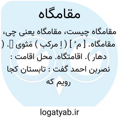 مقامگاه. [ م ُ ] ( اِ مرکب ) مَثوی ̍. ( دهار ). اقامتگاه. محل اقامت: نصربن احمد گفت: تابستان کجا رویم که از این خوشتر مقامگاه نباشد، مهرگان برویم. ( چهارمقاله ص 51 ). چون ابوسعید شیبی به قومس رسید که مقامگاه نصر بود با او همان رفت که... ( ترجمه تاریخ یمینی چ 1 تهران ص 100 ). گفت ای شکال اینک آثار و انوار آن مقامگاه از دور می بینم.( مرزبان نامه ). چون به مقامگاه رسیدند وحوش آمدند و به قدوم ایشان یکدیگر را تهنیت دادند. ( مرزبان نامه چ قزوینی ص 169 ). عزیمت مراجعت تصمیم فرمود و با مقامگاه قدیم آمد. ( جهانگشای جوینی ایضاً ج 1 ص 43 ). لشکر نیز با مقامگاهها شده مانند برق از میغ قاصد او شد و مغافصةً او را فروگرفت. ( جهانگشای جوینی ایضاً ج 1 ص 48 ). در فلان حد که مقامگاه ایشان است گنجی است که افراسیاب نهاده است. ( جهانگشای جوینی ایضاً ج 1 ص 166 ).