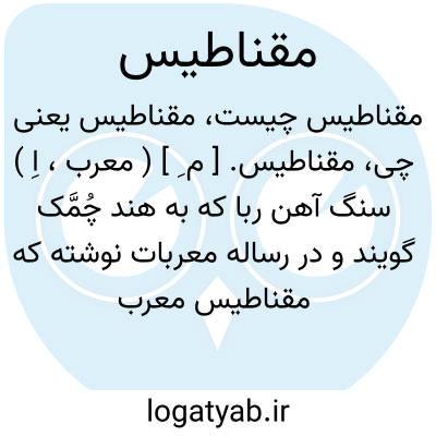 مقناطیس. [ م ِ ] ( معرب، اِ ) سنگ آهن ربا که به هند چُمَّک گویند و در رساله معربات نوشته که مقناطیس معرب مکناطیس که لفظ یونانی است. ( غیاث ) ( آنندراج ). مأخوذ از یونانی، مغناطیس و سنگ آهن ربا. ( ناظم الاطباء ):