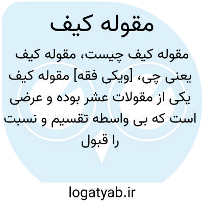 [ویکی فقه] مقوله کیف یکی از مقولات عشر بوده و عرضی است که بی واسطه تقسیم و نسبت را قبول نمی کند. فلاسفه بر اساس استقراء مقوله کیف را به چهار نوع کلی تقسیم کرده اند: کیف نفسانی، کیف محسوس، کیف مخصوص به کمیت و کیف استعدادی.