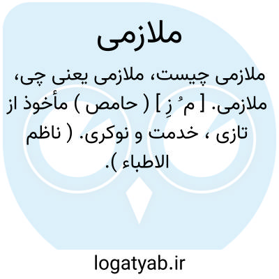 ملازمی. [ م ُ زِ ] ( حامص ) مأخوذ از تازی، خدمت و نوکری. ( ناظم الاطباء ).