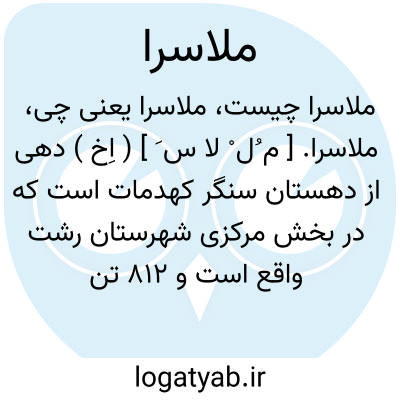 ملاسرا. [ م ُل ْ لا س َ ] ( اِخ ) دهی از دهستان حومه بخش مرکزی شهرستان فومن است و 549 تن سکنه دارد. ( از فرهنگ جغرافیایی ایران ج 2 ).