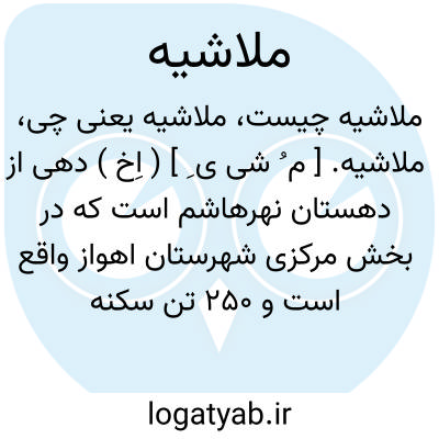 ملاشیه. [ م ُ شی ی ِ ] ( اِخ ) دهی از دهستان نهرهاشم است که در بخش مرکزی شهرستان اهواز واقع است و 250 تن سکنه دارد. این آبادی از سه محل نزدیک به هم تشکیل شده است. ( از فرهنگ جغرافیایی ایران ج 6 ).