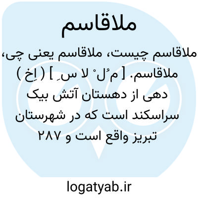 ملاقاسم. [ م ُل ْ لا س ِ ] ( اِخ ) دهی از دهستان آتش بیک سراسکند است که در شهرستان تبریز واقع است و 287 تن سکنه دارد. ( از فرهنگ جغرافیایی ایران ج 4 ).