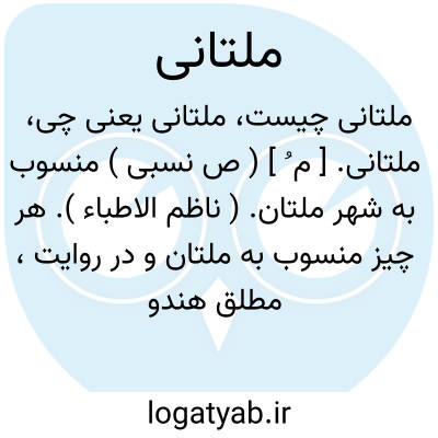 ملتانی. [ م ُ ] ( ص نسبی ) منسوب به شهر ملتان. ( ناظم الاطباء ). هر چیز منسوب به ملتان و در روایت، مطلق هندو را ملتانی گوینداز این جهت که هندوان ساکن ولایت اکثر متوطنان ملتان اند و نظیر این لفظ ترک است که هندوان بر مسلمانان اطلاق کنند چه اوّل قومی که به هندوستان آمده و تاخت وتاراج کرده فوج ترک بوده. ملاطغرا گوید: