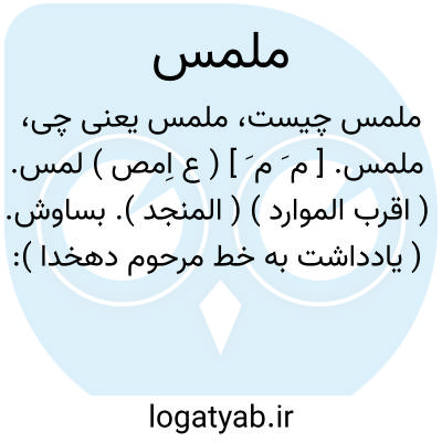 ملمس. [ م َ م َ ] ( ع اِمص ) لمس. ( اقرب الموارد ) ( المنجد ). بساوش. ( یادداشت به خط مرحوم دهخدا ): قال الشیخ الرباطات هی کالاوتار، عصبانیة المرئی و الملمس ای شبیه بالعصب فی البیاض و هوالمرئی و لدونة القوام و هوالملمس. ( بحرالجواهر ).