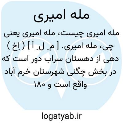 مله امیری. [ م ِ ل ِ اَ ] ( اِخ ) دهی از دهستان سراب دور است که در بخش چگنی شهرستان خرم آباد واقع است و 180 تن سکنه دارد. ( از فرهنگ جغرافیایی ایران ج 6 ).