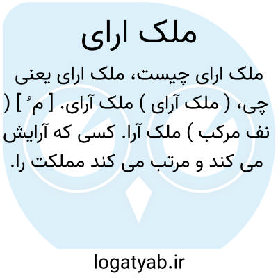 ( ملک آرای ) ملک آرای. [ م ُ ] ( نف مرکب ) ملک آرا. کسی که آرایش می کند و مرتب می کند مملکت را. ( ناظم الاطباء ). که موجب نظم و رونق مملکت است:
