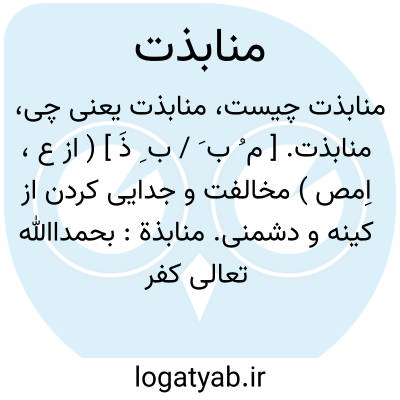 مخالفت و جدایی کردن از کینه و دشمنی. منابذه: بحمدالله تعالی کفر و بدعت... و معاندت و منابذت... همیشه نگونسار و مضمحل..
