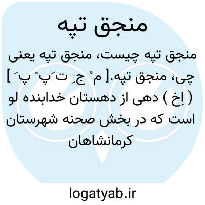منجق تپه.[ م ُ ج ِ ت َپ ْ پ َ ] ( اِخ ) دهی از دهستان خدابنده لو است که در بخش صحنه شهرستان کرمانشاهان واقع است و 192 تن سکنه دارد. ( از فرهنگ جغرافیایی ایران ج 5 ).