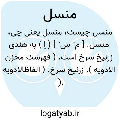 منسل. [ م َ س َ ] ( اِ ) به هندی زرنیخ سرخ است. ( فهرست مخزن الادویه ). زرنیخ سرخ. ( الفاظالادویه ).