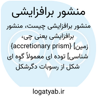 {accretionary prism} [زمین شناسی] توده ای معمولاً گوِه ای شکل از رسوبات دگرشکل شده در زون فرورانش متـ. گوِۀ برافزایشی accretionary wedge
