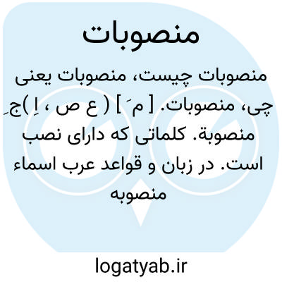 منصوبات. [ م َ ] ( ع ص، اِ )ج ِ منصوبة. کلماتی که دارای نصب است. در زبان و قواعد عرب اسماء منصوبه دوازده قسم اند: مفعول مطلق، مفعول به، مفعول فیه، مفعول له، مفعول معه، حال، تمیز، مستثنی ̍، خبر افعال ناقصه، اسم حروف مشبهة بالفعل، اسم ما و لاء نفی جنس و خبر ما و لاء شبیه به لیس. ( از فرهنگ علوم نقلی سجادی ). رجوع به منصوب و نصب شود.