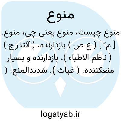 منوع. [ م َ ] ( ع ص ) بازدارنده. ( آنندراج ) ( ناظم الاطباء ). بازدارنده و بسیار منعکننده. ( غیاث ). شدیدالمنع. ( اقرب الموارد ): و اذا مسه الخیر منوعاً. ( قرآن 21/70 ).