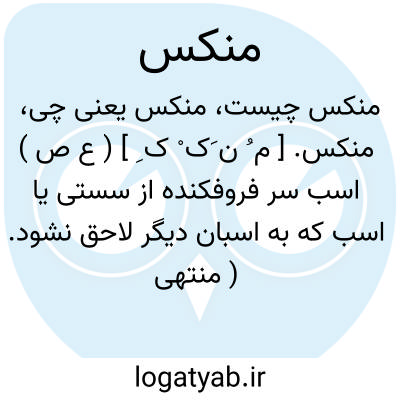 منکس. [ م ُ ن َک ْ ک ِ ] ( ع ص ) اسب سر فروفکنده از سستی یا اسب که به اسبان دیگر لاحق نشود. ( منتهی الارب ) ( آنندراج ) ( ناظم الاطباء ) ( از اقرب الموارد ).
