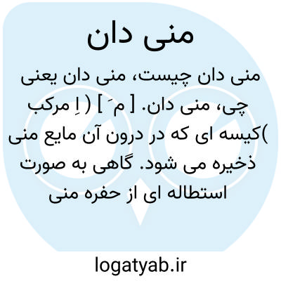 منی دان. [ م َ ] ( اِ مرکب )کیسه ای که در درون آن مایع منی ذخیره می شود. گاهی به صورت استطاله ای از حفره منی دیده میشود. ( فرهنگ اصطلاحات علمی ).