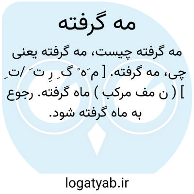 مه گرفته. [ م َه ْ گ ِ رِ ت َ /ت ِ ] ( ن مف مرکب ) ماه گرفته. رجوع به ماه گرفته شود.