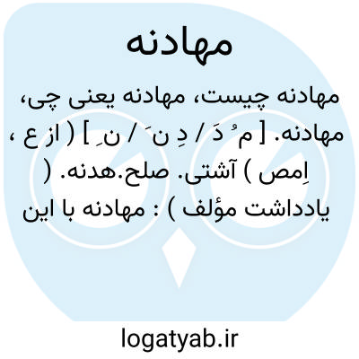 مهادنه. [ م ُ دَ / دِ ن َ / ن ِ ] ( از ع، اِمص ) آشتی. صلح.هدنه. ( یادداشت مؤلف ): مهادنه با این مناجس دور باشد و لایق عزت اسلام نیاید. ( ترجمه تاریخ یمینی ). از جانبین صلاح در مصالحت دیدند ظاهراً مهادنه در هم پیوستند. ( جهانگشای جوینی ). و رجوع به مهادنت شود. || ( اصطلاح فقه ) قرارداد صلح موقت.
