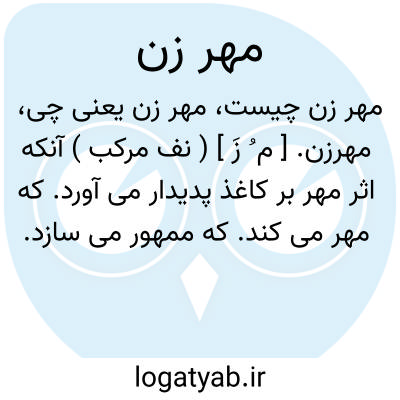 مهرزن. [ م ُ زَ ] ( نف مرکب ) آنکه اثر مهر بر کاغذ پدیدار می آورد. که مهر می کند. که ممهور می سازد. که مهر بر کاغذ یا بر چیزی می زند. || طابع. طباع. ( منتهی الارب ). چاپچی. چاپ کننده. باسمه کننده.