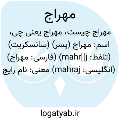 اسم: مهراج (پسر) (سانسکریت) (تلفظ: mahrāj) (فارسی: مهراج) (انگلیسی: mahraj)