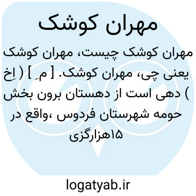 مهران کوشک. [ م ِ ] ( اِخ ) دهی است از دهستان برون بخش حومه شهرستان فردوس،واقع در 15هزارگزی جنوب باختری فردوس، سر راه شوسه ٔعمومی بجستان به فردوس. دارای 608 تن سکنه. آب آن از قنات و راه آن مالرو است. مزارع گز، فدروئی و شوران جزء این ده است. ( از فرهنگ جغرافیائی ایران ج 9 ).