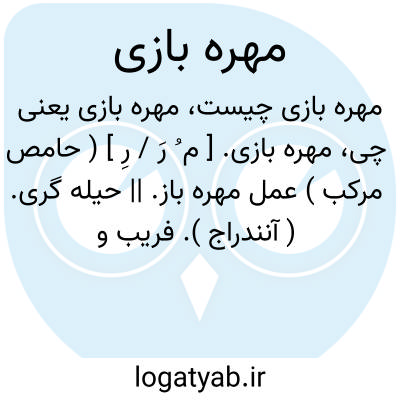 مهره بازی. [ م ُ رَ / رِ ] ( حامص مرکب ) عمل مهره باز. || حیله گری. ( آنندراج ). فریب و مکر و حیله بازی.( ناظم الاطباء ). شعبده. شعوذه. چشم بندی: