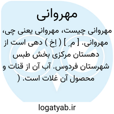 مهروانی. [ م ِ ] ( اِخ ) دهی است از دهستان مرکزی بخش طبس شهرستان فردوس. آب آن از قنات و محصول آن غلات است. ( از فرهنگ جغرافیائی ایران ج 9 ).