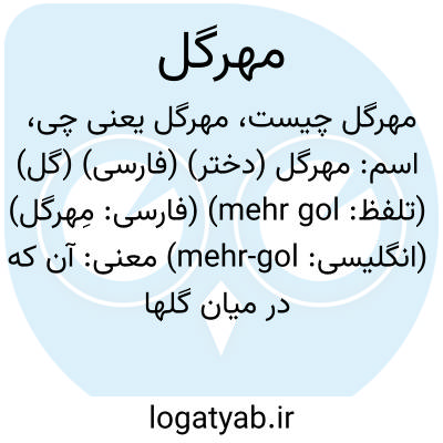 اسم: مهرگل (دختر) (فارسی) (گل) (تلفظ: mehr gol) (فارسی: مِهرگل) (انگلیسی: mehr-gol)