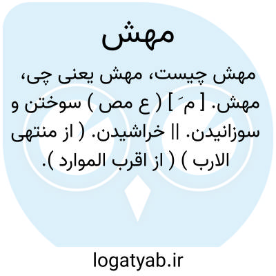 مهش. [ م َ ] ( ع مص ) سوختن و سوزانیدن. || خراشیدن. ( از منتهی الارب ) ( از اقرب الموارد ).