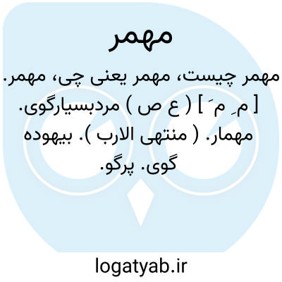 مهمر. [ م ِ م َ ] ( ع ص ) مردبسیارگوی. مهمار. ( منتهی الارب ). بیهوده گوی. پرگو.