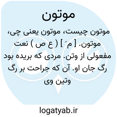 موتون. [ م َ ] ( ع ص ) نعت مفعولی از وتن. مردی که بریده بود رگ جان او. آن که جراحت بر رگ وتین وی رسیده باشد. ( ناظم الاطباء ). آن که وتین یعنی رگ درونی ملاصق قلب او مورد اصابت قرار گرفته باشد. ( از اقرب الموارد ). بر وتین زده شده که رگ دل است. ( آنندراج ).