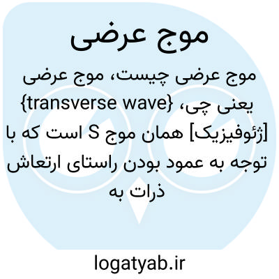 {transverse wave} [ژئوفیزیک] همان موج S است که با توجه به عمود بودن راستای ارتعاش ذرات به راستای انتشار موج به این نام نیز خوانده می شود