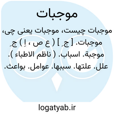 موجبات. [ ج ِ ] ( ع ص، اِ ) ج ِ موجبة. اسباب. ( ناظم الاطباء ). علل. علتها. سببها. عوامل. بواعث. باعثها: دولت باید موجبات آسایش ملت را فراهم کند.