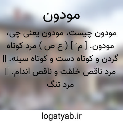 مودون. [ م َ ] ( ع ص ) مرد کوتاه گردن و کوتاه دست و کوتاه سینه. || مرد ناقص خلقت و ناقص اندام. || مرد تنگ دوش. ( از منتهی الارب ) ( از آنندراج ) ( ناظم الاطباء ). و رجوع به مودن شود. || بچه لاغر و نزار. ( منتهی الارب ) ( آنندراج ). بچه زار و لاغر زاییده شده. ( ناظم الاطباء ). کودک نارسیده. ( مهذب الاسماء ). ورجوع به مودن و مودونة شود. || تر نهاده.( منتهی الارب ) ( آنندراج ) ( ناظم الاطباء ). خیسانیده.