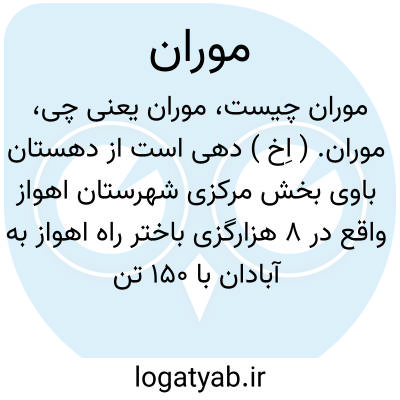 موران. ( اِخ ) دهی است از دهستان باوی بخش مرکزی شهرستان اهواز واقع در 8 هزارگزی باختر راه اهواز به آبادان با 150 تن جمعیت. آب آن از رودخانه کارون و راه آن ماشین رو است. ( از فرهنگ جغرافیائی ایران ج 6 ).