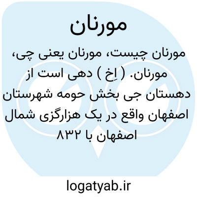 مورنان. ( اِخ ) دهی است از دهستان قهاب بخش حومه شهرستان اصفهان واقعدر 12 هزارگزی شمال خاور اصفهان با 99 تن سکنه. و راه آن مالرو است. ( از فرهنگ جغرافیائی ایران ج 10 ).