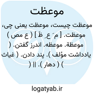 موعظة. [ م َ ع ِ ظَ] ( ع مص ) پند دادن کسی را به سخنان دل گرم کننده. ( منتهی الارب ). وعظ. ( ناظم الاطباء ). پند دادن و موعظه کردن. ( یادداشت مؤلف ). پند دادن. ( آنندراج ). و رجوع به وعظ شود. || ( اِ ) پند. ج، مواعظ. ( مهذب الاسماء ). پند و نصیحت به سخنان دل نرم کننده. ج، مواعظ. ( ناظم الاطباء ). پند. ( ترجمان القرآن جرجانی ص 96 ) ( آنندراج ). موعظه. موعظت. اندرز. نصیحت. ( یادداشت مؤلف ). سخنی که دلهای سنگوار و سخت را نرم سازد و اشک از دیدگان جامد بگشاید و کردارهای زشت نیکو گرداند. ( از تعریفات جرجانی ). و رجوع به موعظه و موعظت شود.