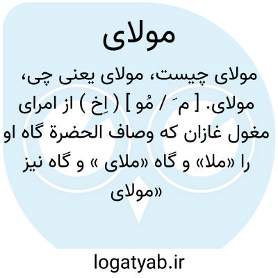مولای. [ م َ / مُو ] ( اِخ ) از امرای مغول غازان که وصاف الحضرة گاه او را «ملا» و گاه «ملای » و گاه نیز «مولای » می نویسد. ( تاریخ وصاف ص 374، 377، 378، 379، 380، 397، 410، 411، 414 ). از سرداران معروف غازان بوده است و نام او مخصوصاً در جنگ غازان با مصریان و شامیان در شهور سنه 697 هَ. ق. و سالهای بعد بسیار می آید. رجوع شود به یادداشتهای قزوینی ج 3 ص 335.