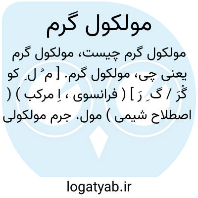 مولکول گرم. [ م ُ ل ِ کو گْرَ / گ ِ رَ ] ( فرانسوی، اِ مرکب ) ( اصطلاح شیمی ) مول. جرم مولکولی یک ماده که برحسب گرم بیان شود، مثلاً 18 گرم برای آب. ( فرهنگ اصطلاحات علمی ).